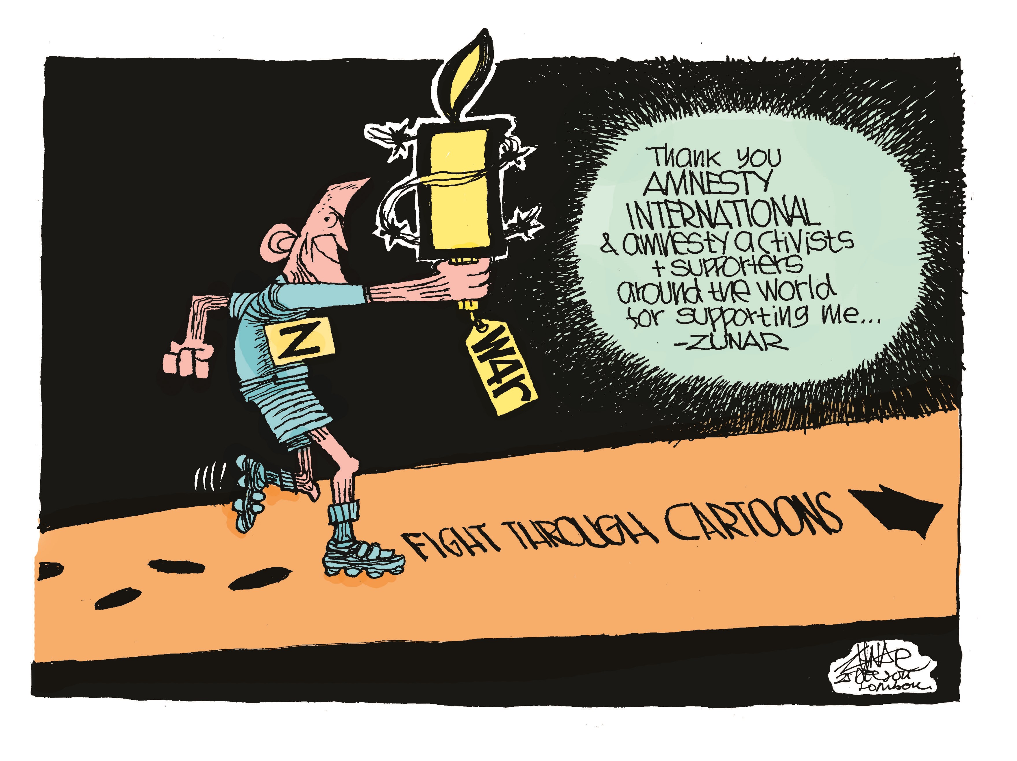 Amnistía Internacional lleva tres años haciendo campaña internacional para que se retiren los cargos contra Zunar. El 3 de abril de 2015 se presentaron nueve cargos de sedición contraZunar por insultar presuntamente al poder judicial en varios tuits relacionados con Anwar Ibrahim, entonces líder de la oposición y ex preso de conciencia, que había sido encarcelado por cargos de sodomía.